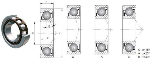 Single-row angular contact ball bearings with a 40° contact angle (suffix B) are manufactured in two types based on different applications: