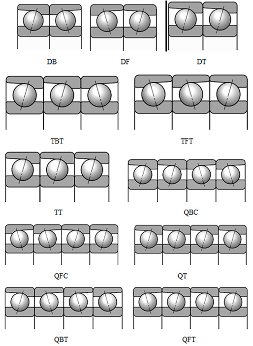 Due to the structural characteristics of single-row angular contact ball bearings, they are usually used in a matched configuration of two or more bearings of the same model. The common matching methods are as follows: