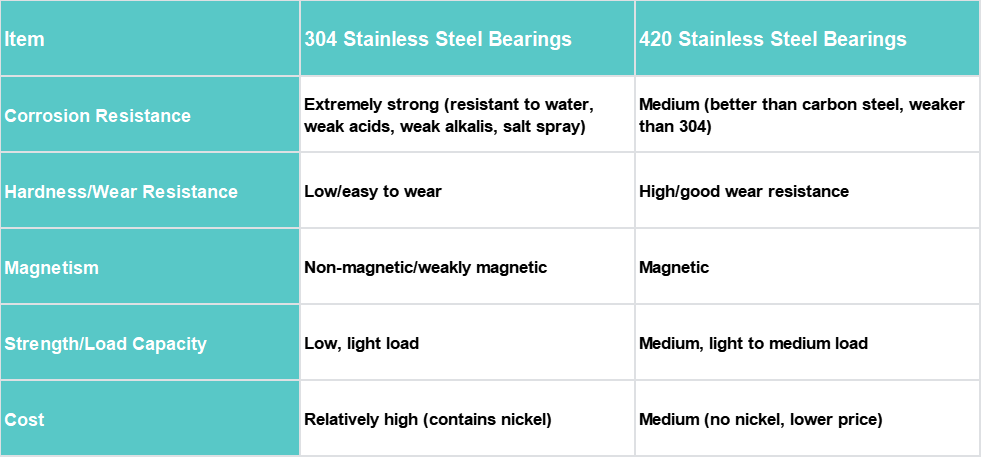 Differences Between 304 Stainless Steel Deep Groove Ball Bearings and 420 Stainless Steel Bearing