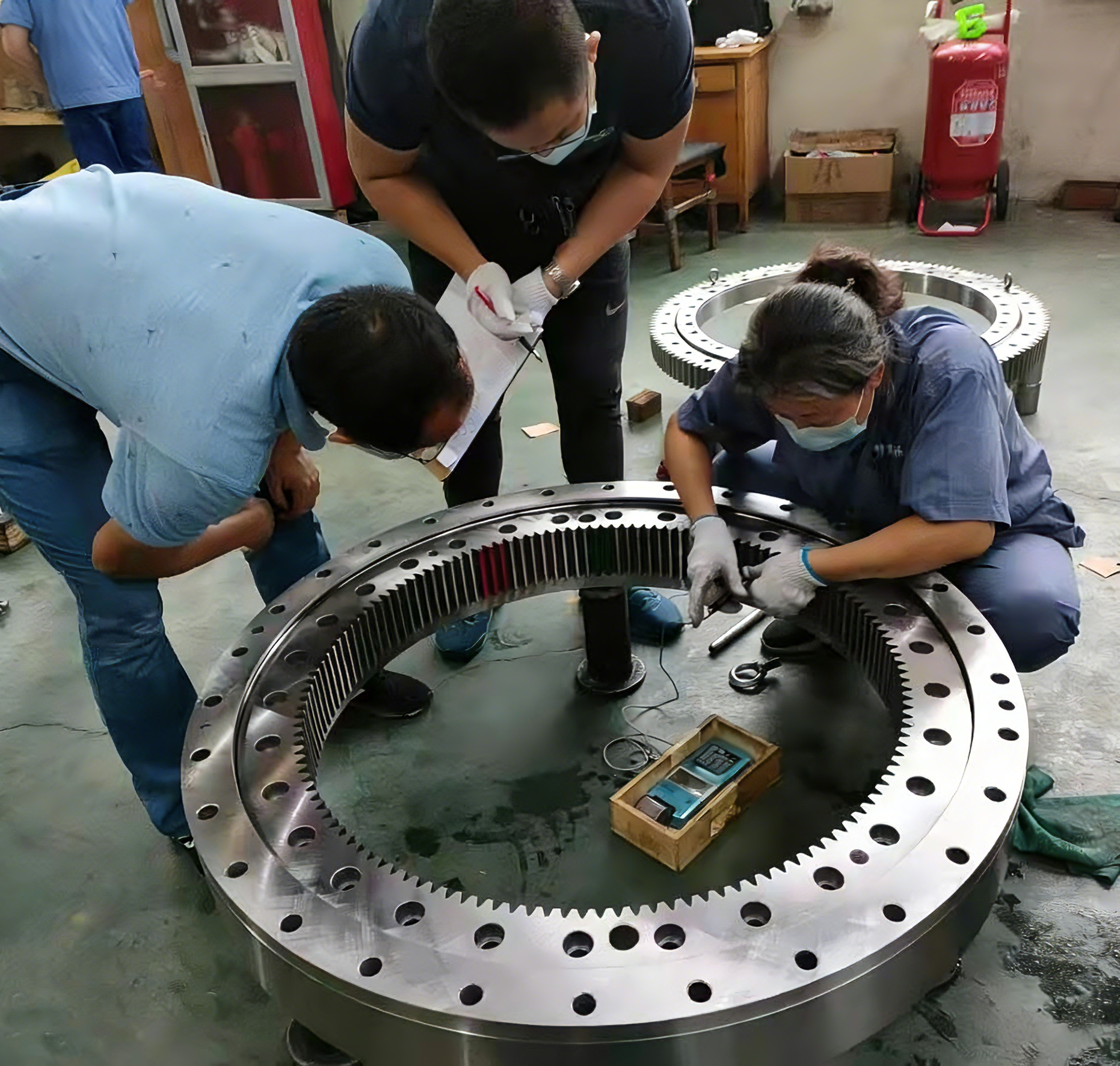 Slewing bearings are mounted to the machine structure using high-strength bolts. Bolt loosening is one of the most common causes of premature bearing failure.