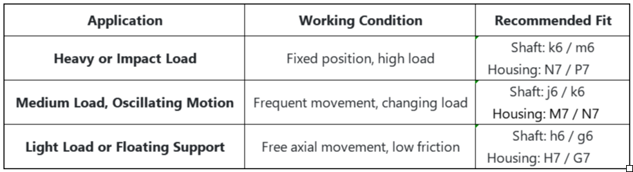 The appropriate bearing fit varies greatly depending on load type, support mode, and motion pattern.