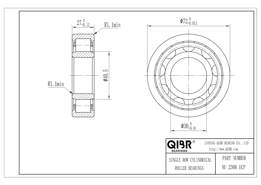 QIBR - NU 2306 ECP Cylindrical Roller Bearing Characteristics