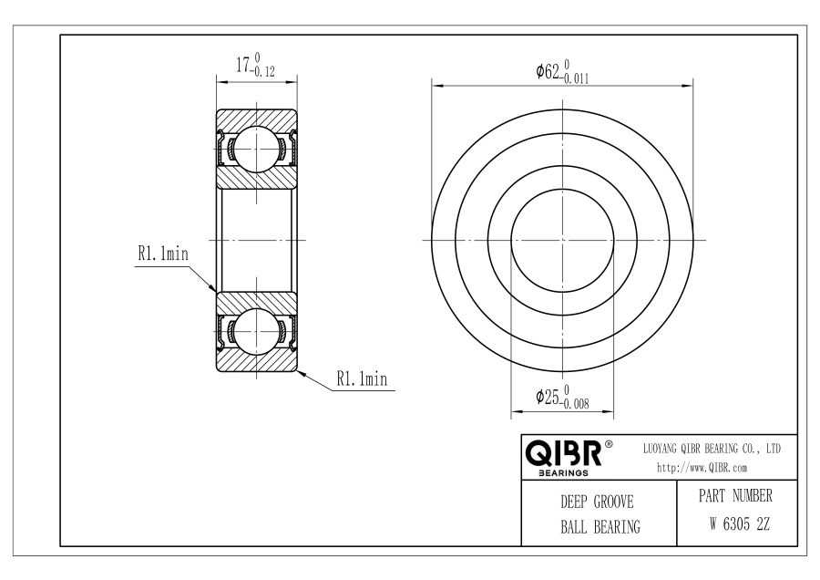 QIBR - W 6305 2Z Deep Groove Ball Bearing Characteristics